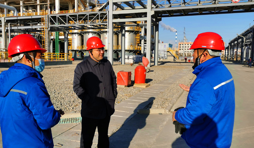 楊龍在檢查了利?;す緩S區生產情況及裝置防寒保溫措施后,對該公司防寒生產工作予以肯定,并要求繼續完善好極端天氣下的防寒防凍工作,同時加強疫情防控,確保公司安全穩定生產。