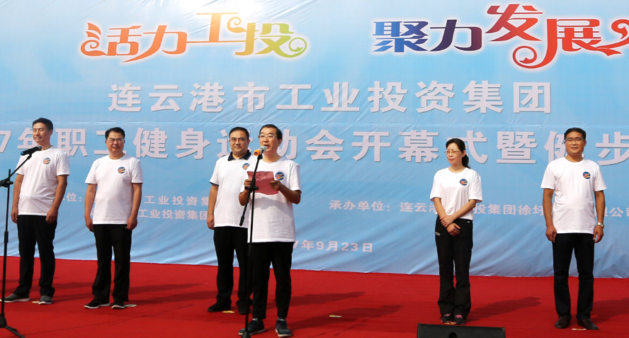 金秋九月,天藍氣清。為豐富職工業余文化生活,展示職工健康文明、積極向上的精神面貌,9月23日上午,集團公司2017年職工健身運動會開幕式暨健步走活動在徐圩新區云湖廣場隆重舉行。集團公司董事長、黨委書記楊龍宣布運動會開幕,并為健步走活動發令。總經理胡建明致開幕詞,工會主席戴鴻鳴主持開幕式。