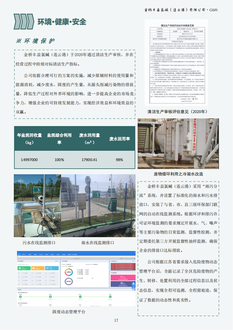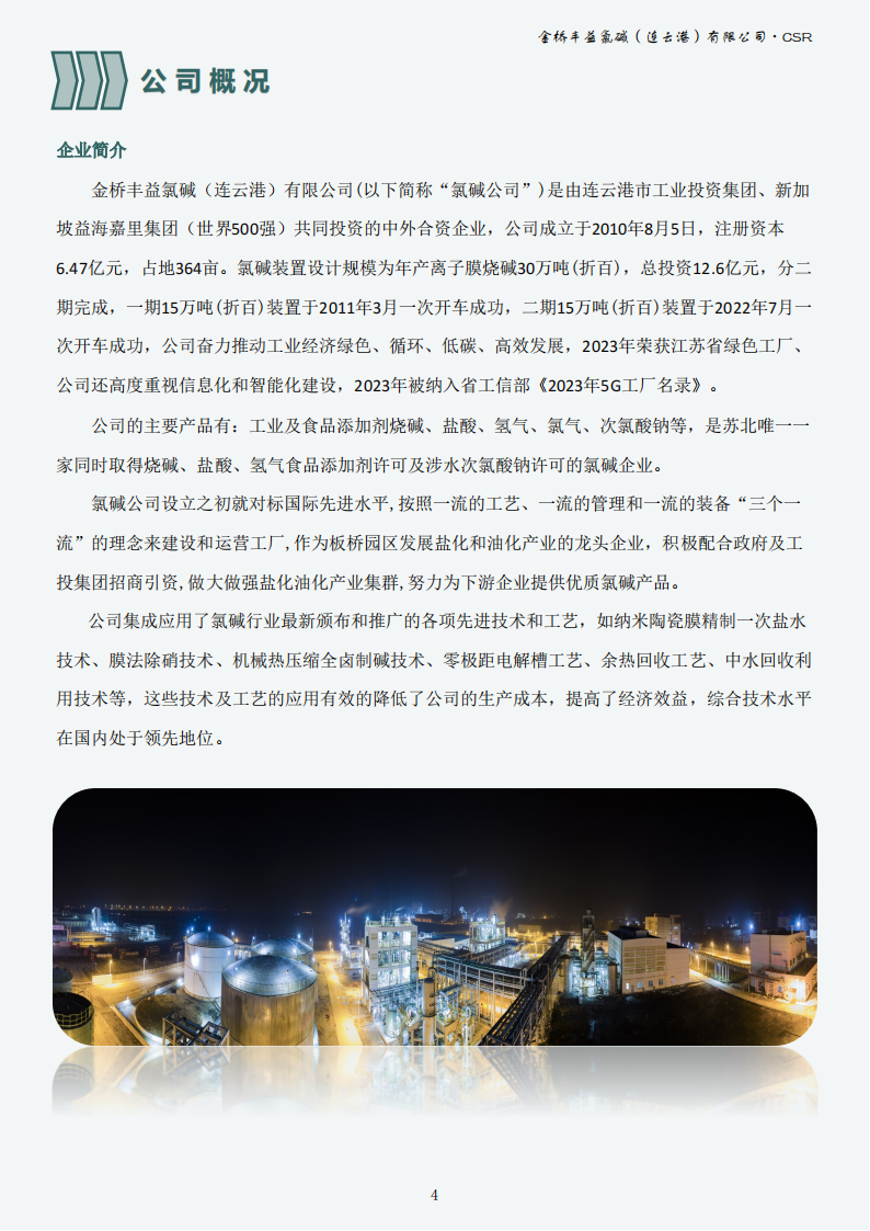 金橋豐益氯堿(連云港)有限公司2023年可持續發展報告公示