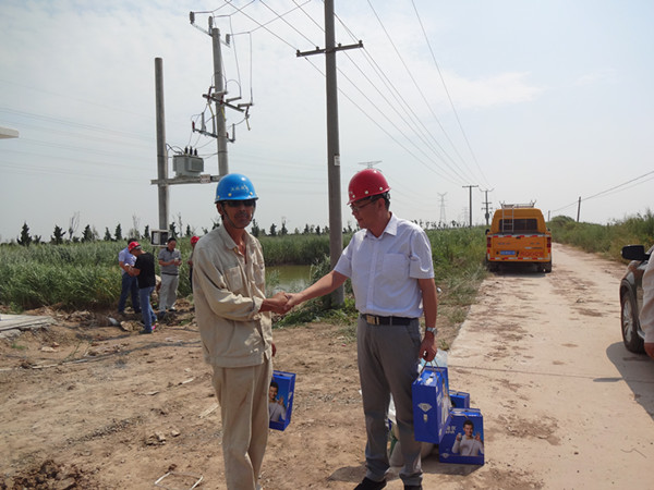 近日,中午天氣持續高溫炎熱,公司經理孫政權、工會主席王志軍、副經理袁慶國等領導,于91日上午,來到灌西供電所施工現場看望慰問一線職工,并給他們送去了食品、飲料等慰問品。