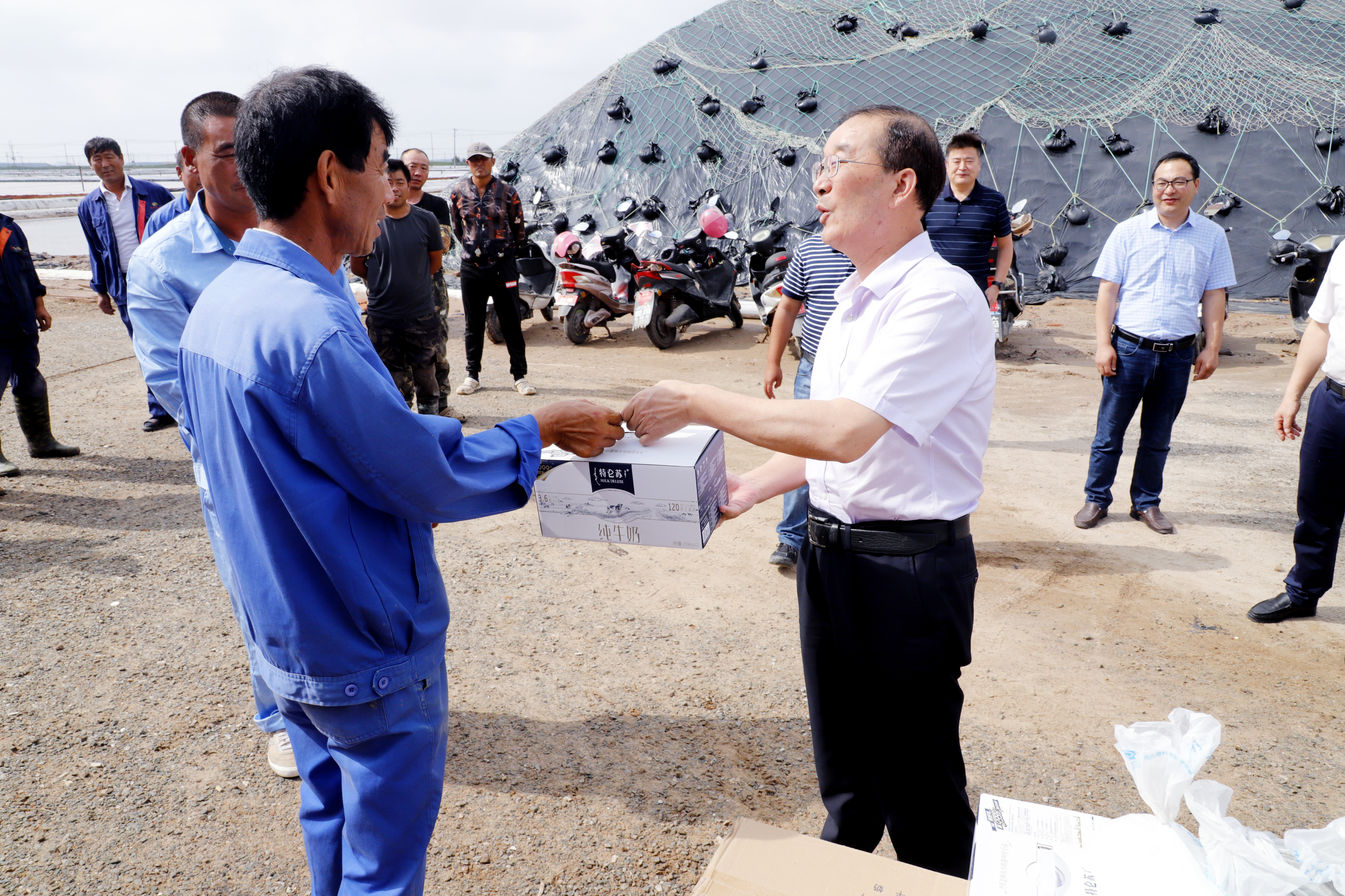 “大家辛苦了?!焙?/span>微笑著與一線工人一一握手表示感謝,感謝大家為公司做出的貢獻,并送上了清涼飲品。同時,他還詳細詢問了生產情況,囑咐在高溫天氣下,既要抓好安全生產,也要勞逸結合,保重身體,嚴防中暑。“最近天氣比較炎熱,大家要休息好,上班要注意安全,做好防暑降溫措施,保持身體健康。”