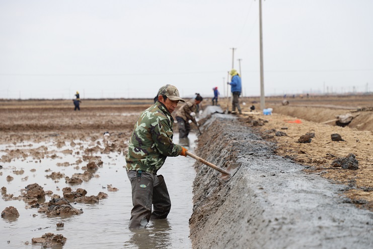 11月29日上午,雖然天氣寒冷,但是在海鹽基地新改造的制鹵灘上,卻到處是一派火熱的勞動景象,參加“大會戰”的工人多達100余人,只見他們有的潑水,有的鏟泥,有的撈溝,有的做埝,大家分工協作。據了解,為了提高海水制鹵能力,確保海鹽產量,今年公司專門對海鹽基地部分廢棄灘地進行了改造,以進一步增加制鹵面積。近期,隨著改造工程接近尾聲,公司又組織精干力量對新改造灘地繼續進行修整,以確保新建的制鹵灘地能夠盡快投入使用,為明年海鹽生產工作的正常有序開展奠定扎實的基礎。