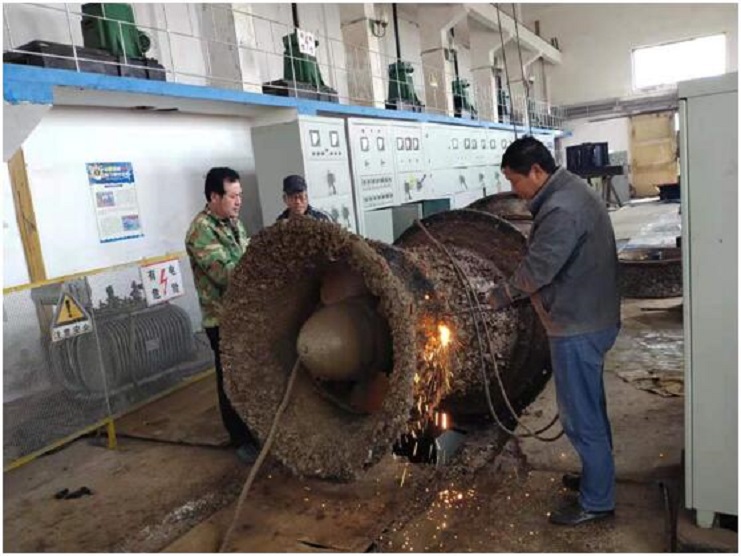 現在正值秋季海水養殖池塘產品起捕高峰,為了保證水源正常供應,六圩閘站機修人員利用小汛潮期間,加班加點搶修機泵,確保大汛來之前,機泵全面運行供水。(古青)