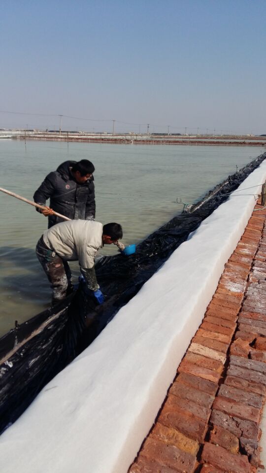 埒南制鹽分公司認真做好灘場文明工作,做好“三雨”期間的塑池管理,減少塑池鹵水跑冒滴漏,最大限度地提高生產文明化水準,提高鹵水利用率,為降本增效打好基礎。圖為職工在降雨后及時進行整理塑布。(耿劉)