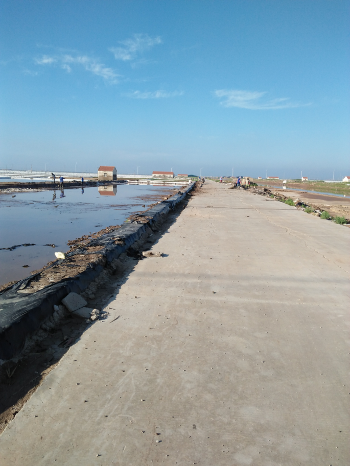 近來,天氣炎熱,陰晴不定,給日曬制鹽新河分公司生產(chǎn)工作帶來不便。新河制鹽職工本著早五晚七的工作時,斗酷暑、避高溫,搶修灘。這不!新河八班提前把大廩基修整工作擺上議事日程。十名男女職工齊聚二期大廩,有運(yùn)土打埝的、有挖泥培土的、有拖整雜物的、有挖溝整平的、有拉布苫埝,看得出分工明確,各有所為,個個干得心無旁騖,大汗淋漓。