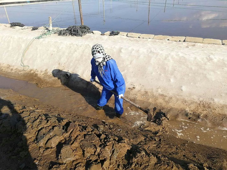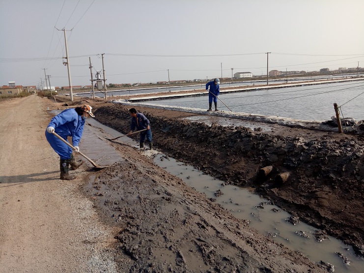 海鹽基地三個班組,每班集中人力從門面溝開始做起,依次咸頭、甜頭。走進灘頭,大家手握鐵锨有挖泥的、踩泥的、澆水的、抹平的,干得熱火朝天。下步將進入和格壓格階段工作。(實業公司)