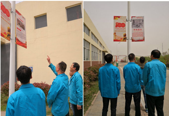 利用廠區(qū)路燈桿設(shè)計制作黨史學習畫報