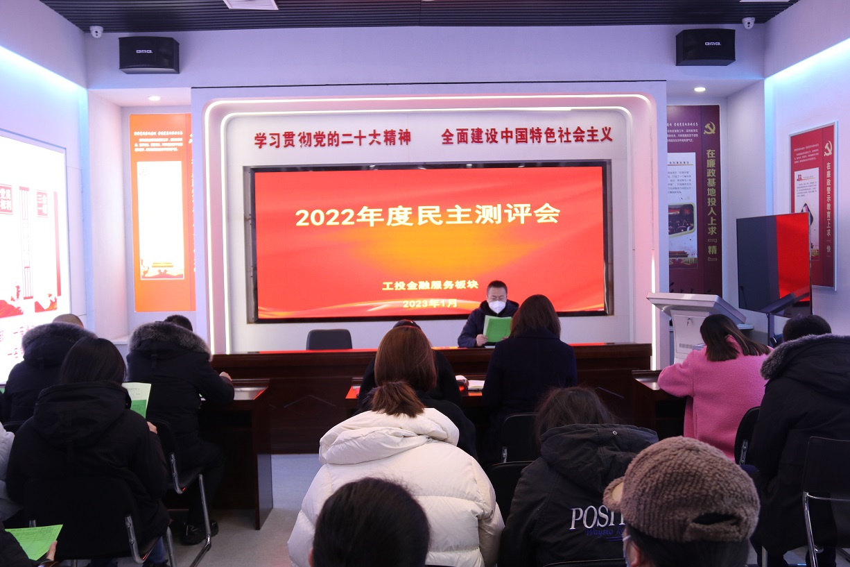 1月16日上午,金融板塊在五樓會(huì)議室召開2022年度民主測(cè)評(píng)會(huì),支部書記、董事長(zhǎng)徐兵主持會(huì)議。