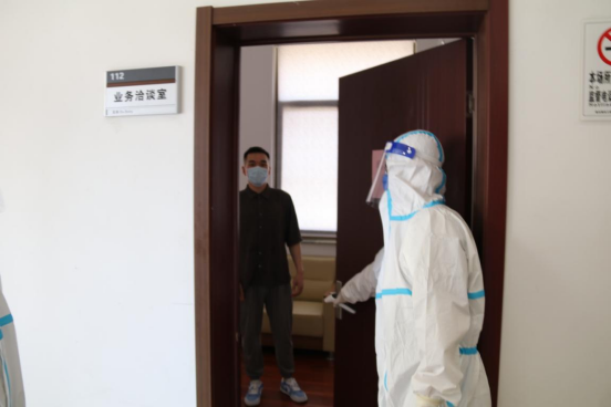 按照市、區兩級對經營場所疫情防控的具體要求并結合實際情況,針對金融板塊外來業務辦理人員較多的特點,疫情防控小組提前制定了演練預案,模擬演練了辦公區外門衛核查過程中發現疑似感染者的應急處置過程