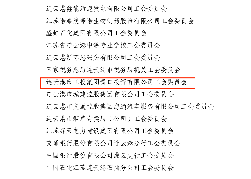 青口投資公司工會榮獲“江蘇省模范職工之家”稱號