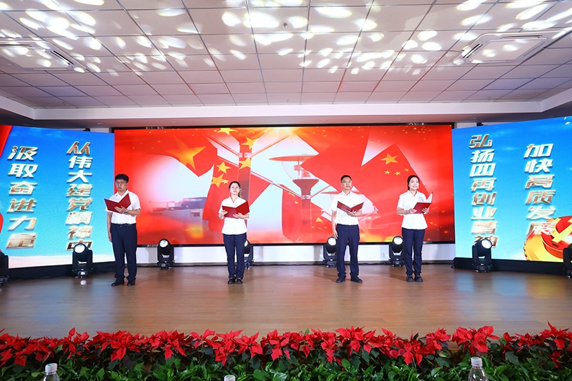 演出中,陳大壹、宋思雯、閆佳俊等十名新發(fā)展的中共預(yù)備黨員和新老黨員代表進(jìn)行了現(xiàn)場宣誓,并合唱《我宣誓》。對公司黨委評選出的星級員工進(jìn)行表彰,并對三星級員工進(jìn)行了專訪。
