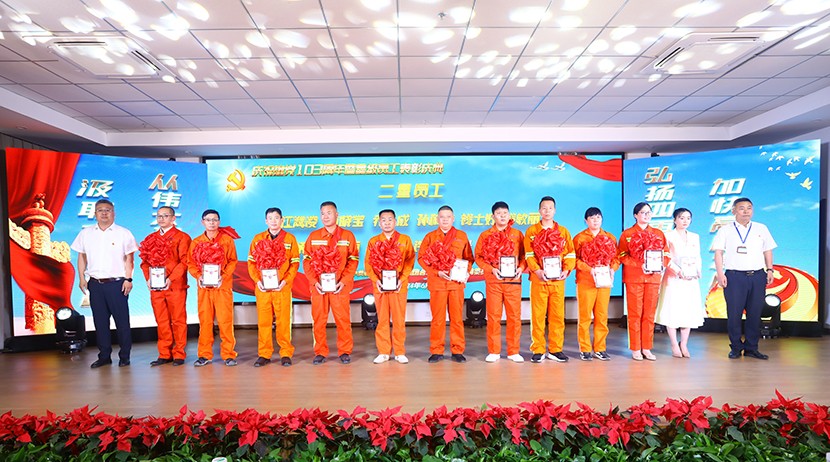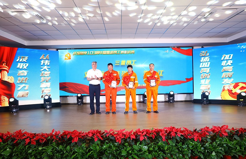 為鼓勵先進(jìn)、創(chuàng)樹典型,進(jìn)一步激發(fā)全公司廣大員工干事創(chuàng)業(yè)活力,不斷推動“ 敢為、敢闖、敢干、敢首創(chuàng)”在全公司上下蔚然成風(fēng),助力公司高質(zhì)量跨越式發(fā)展。6月21日下午,臺北(華茂)公司“展風(fēng)采·黨旗頌·強(qiáng)發(fā)展”星級員工頒獎文藝演出在環(huán)保裝備產(chǎn)業(yè)園圓滿落幕。公司領(lǐng)導(dǎo)班子,各單位、部門干部職工觀看演出,特邀請集團(tuán)黨建人資、工會等同志到場觀摩指導(dǎo)。