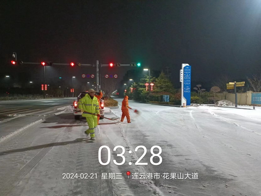 ? ? 220日晚,港城迎來了新一輪大范圍降雪,大部分地區出現凍雨伴冰粒天氣。為保障群眾出行安全,益豐園林分公司以雪為令,副經理孫杰帶領徐明磊、樊如軍、朱文健3黨員同志迅速反應,快速出擊,身披“橘”甲,浴“雪”奮戰。傍晚6點開始,從新光路涵洞區域到花果山大道東側,先鋒大橋至黃海大道區域,再到東方續道至大港東路路段,4名同志不分晝夜,連續奮戰,不間斷巡查,發現積雪立即鏟除,及時消除道路安全隱患,共計撒布融雪劑8余噸,積雪清理成效明顯,為周邊群眾出行開辟出一條“溫暖平安路”。