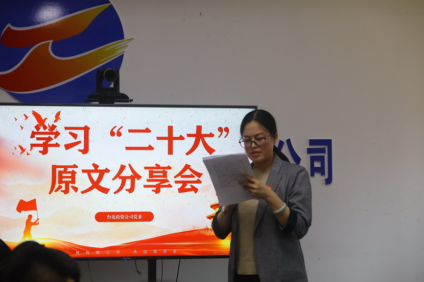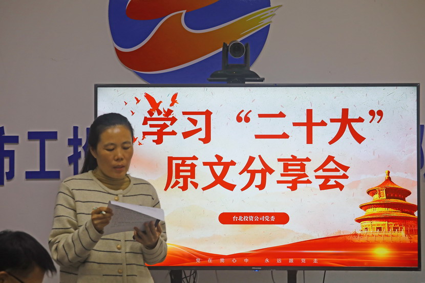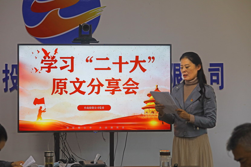 10月21日,臺北投資公司黨委組織召開黨的二十大報告學習交流會,每位同志閱讀報告原文,針對報告內容結合工作實際,分享心得體會、暢談工作思路、謀劃未來發展。