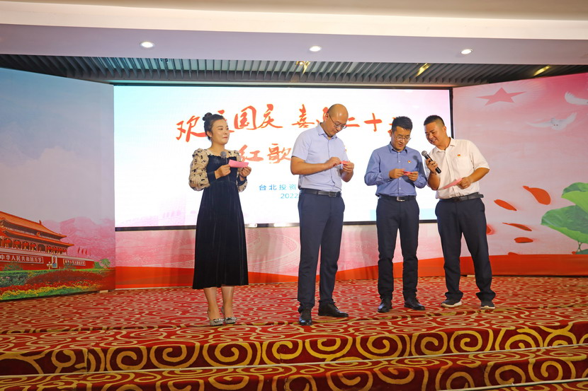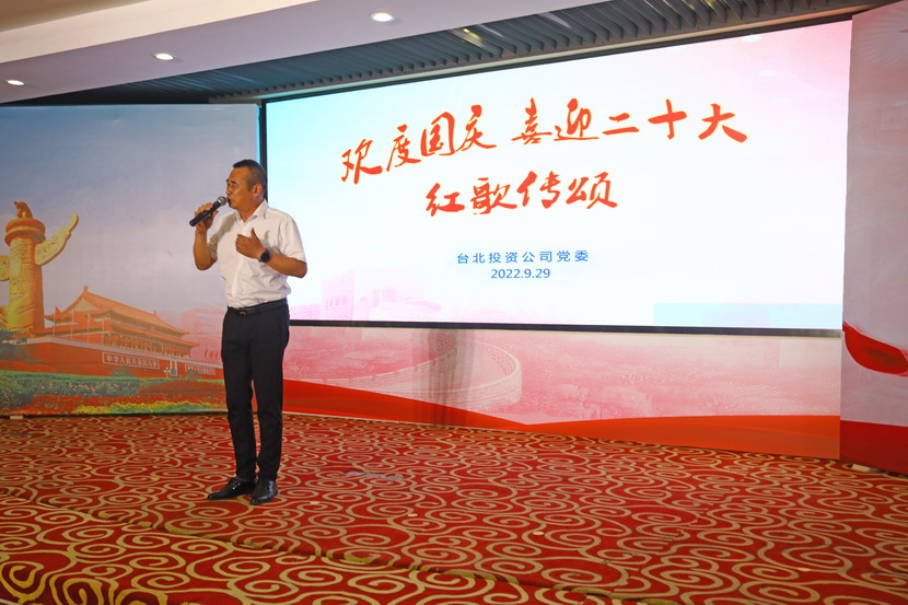 為慶祝新中國成立73周年,9月29日下午,臺北投資公司舉辦了“歡度國慶·喜迎二十大”紅歌傳頌會,來自各直屬單位和機關廣大員工匯聚一堂,用最甜美的聲音歌唱祖國、用最真摯的詩詞贊頌祖國,現場亮點頻現、精彩紛呈。