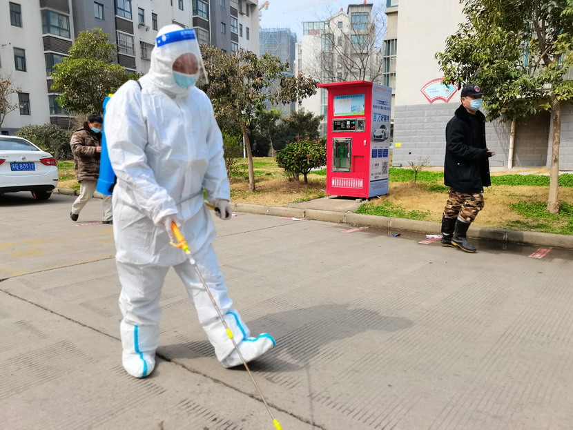 孫銀:“請(qǐng)大家抬一下腳,靠邊站一下,我將您的周圍噴灑消毒液進(jìn)行消毒,謝謝配合!”