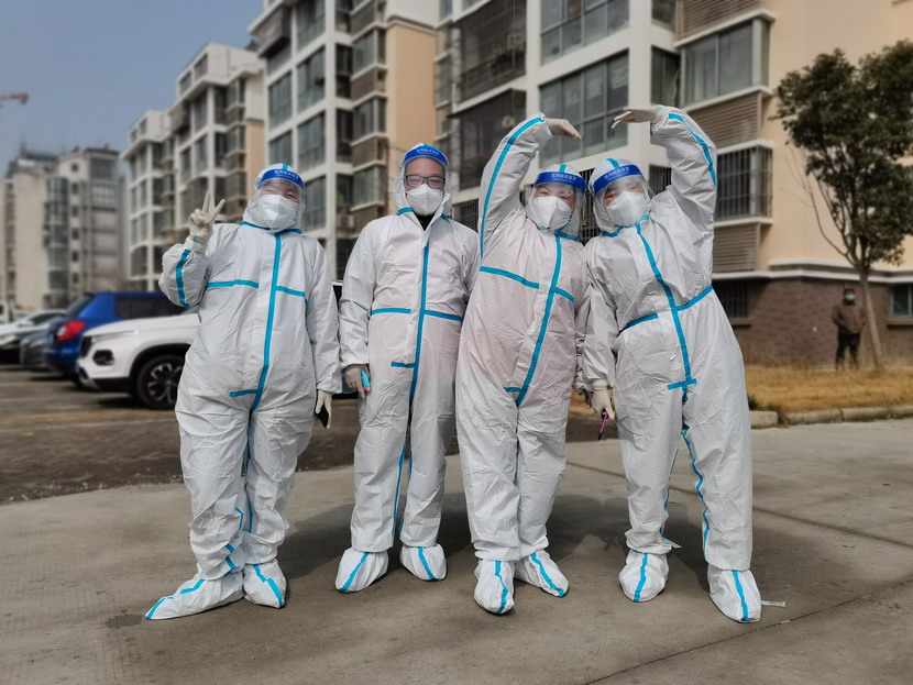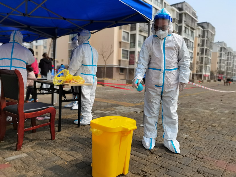 清晨6點(diǎn)30分,1號(hào)檢測(cè)點(diǎn),李明同志在檢查物資,“大白”服裝4套、“小藍(lán)”服裝6套、棉簽600根……;2號(hào)檢測(cè)點(diǎn),于洪亮在將物資上桌,病毒核酸檢測(cè)試管、棉簽、消毒液,“還缺少一瓶酒精,我立即反饋給社區(qū),請(qǐng)社區(qū)抓緊安排送來(lái)”;4號(hào)檢測(cè)點(diǎn),蘇玲、秦黎明正在互相幫忙穿好防護(hù)服,“秦姐,這個(gè)防護(hù)面罩里外有兩層薄膜,我給你撕掉,這樣就不會(huì)有霧氣了”,“嗯嗯,你這個(gè)拉鏈得拉到頂,我們自己也一定要做好防護(hù)”秦黎明溫柔的說(shuō);5號(hào)檢測(cè)點(diǎn),內(nèi)退黨員孫芳和姜海洋,互相在防護(hù)服后背寫上對(duì)方的名字,以便于更高效的完成檢測(cè)工作;6號(hào)檢測(cè)點(diǎn),霍正鋼、朱文健、韓永剛、邱榮濱正在清點(diǎn)檢測(cè)小卡片;7號(hào)檢測(cè)點(diǎn),張強(qiáng)在拿著酒精給廢物處置垃圾箱消毒;8號(hào)檢測(cè)點(diǎn),新加入的孫銀、占恒春、尹永明、韓永光、趙紹慶正在給消殺噴霧劑灌裝84消毒液,社區(qū)8個(gè)檢測(cè)點(diǎn)的消殺工作全部由昌圩臨時(shí)黨支部志愿者負(fù)責(zé)。