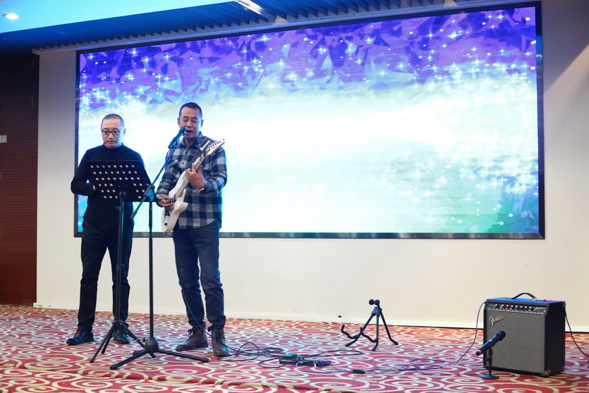 聯(lián)歡會節(jié)目豐富多彩,有獨唱、小合唱、魔術(shù)、游戲等。精彩的表演贏得了全場陣陣歡聲笑語,雖然表演很業(yè)余,但大家各個精神抖擻,充分展示了公司員工的蓬勃朝氣和奮發(fā)進(jìn)取的精神。在熱烈氛圍的感染下,公司領(lǐng)導(dǎo)也紛紛上臺表演節(jié)目為晚會助興,楊善革《我愛你塞北的雪》對新年的祝福和期盼,表達(dá)了迎新年的喜悅心情。公司黨委書記、董事長、總經(jīng)理王德志一曲《南泥灣》更是唱出了公司全體員工熱愛祖國,熱愛企業(yè),立志艱苦奮斗、自力更生,決戰(zhàn)2022,打贏臺北保衛(wèi)戰(zhàn),再創(chuàng)臺北新輝煌的決心。