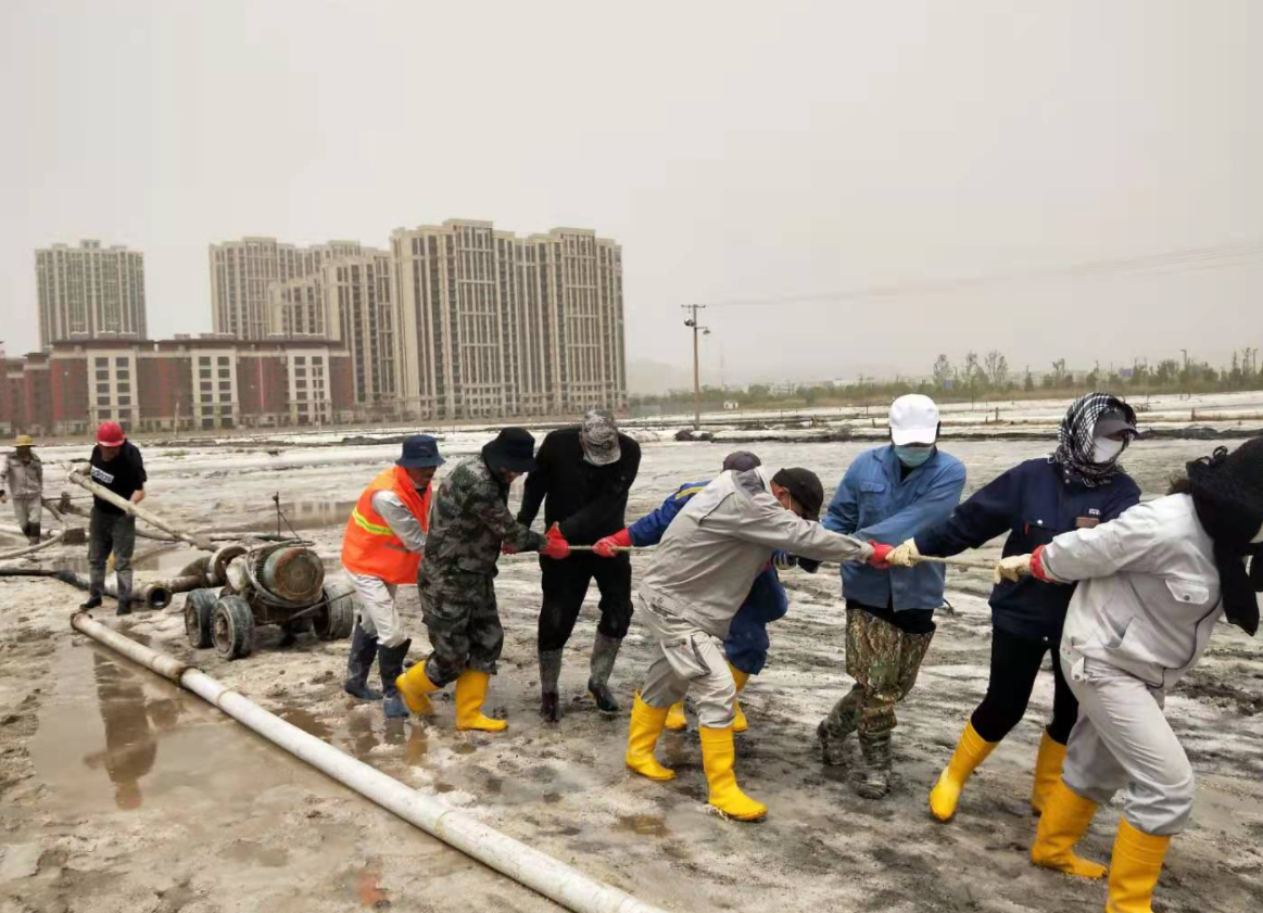 “百日會戰(zhàn)”完美收官,大家以黨史學(xué)習(xí)教育為精神動力,弘揚“四再”創(chuàng)業(yè)精神,淬煉“四拼”工作作風(fēng),展現(xiàn)出強有力的政治責(zé)任感和歷史使命感,在廣袤的鹽田上,用勤勞的汗水譜寫“四個最”的美麗華章。開局最早,搶抓春景好時光,開創(chuàng)歷史最早記錄,“破天荒”地從大年初十開啟扒鹽。戰(zhàn)線最長,以西灘機械扒鹽為起點,歷經(jīng)東灘、大八組、海濱人工扒鹽,二組、西灘雙線齊上、火力全開,至東灘機械扒鹽落下帷幕,實現(xiàn)了“漫漫長征路”的圓滿勝利。歷時最久,整整百日一舉打破扒鹽歷時最久記錄,從冷冽刺骨的寒風(fēng),到烈日當(dāng)空的火熱,從臃腫的棉襖,到清涼的短袖。困難最多,面對天時不利的氣象條件,面對著堿廠關(guān)停的嚴(yán)峻局勢,面對著環(huán)保安全的巨大壓力,面對著人手不足的現(xiàn)實問題,團結(jié)一心,攻堅克難,迎接挑戰(zhàn),眾志成城筑鹽山,“暑霜春雪”顆粒盡歸倉。