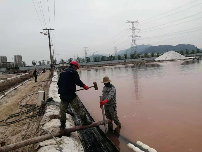 鏡頭四:新光路鹽河邊被開(kāi)發(fā)區(qū)污水管道施工損壞的灌西鈣液管道,搶修工作正在緊鑼密鼓的進(jìn)行中。爭(zhēng)取早一天完成就能早一天開(kāi)機(jī)打鹵,將損失減少到最小。