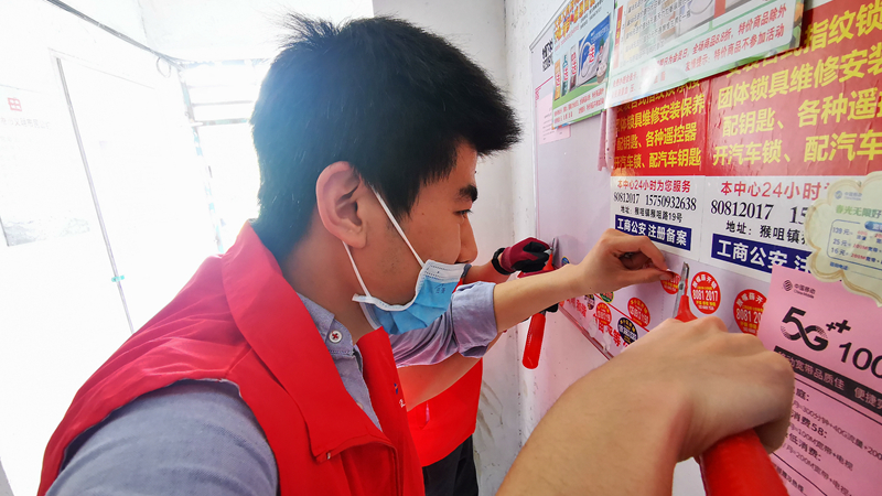 水淋、撕鏟、涂抹,志愿者們“奇招百出”對(duì)小區(qū)墻面、電線桿等處張貼、噴涂的小廣告進(jìn)行全面清理。35度的高溫下,汗流浹背的大伙收獲的不僅是小區(qū)“臉面”煥然一新后勞動(dòng)的喜悅,還有結(jié)識(shí)志同道合的新朋友通力協(xié)作的“戰(zhàn)友情”。