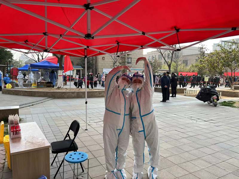 1600,檢測進入尾聲,忙里偷閑和大家聊會天,身邊的“大白”來自各行各業,疫情防控戰打響,在這危難時刻,我們一同挺身而出,臨危受命,“逆行”沖往防疫第一線。大家聽從指揮、主動擔當的具體行動,充分體現了年輕黨員能打硬仗、敢打硬仗的優良品格!