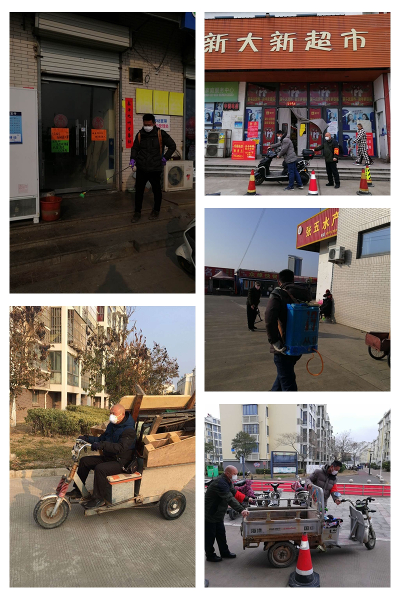 年初三開始,和值班領(lǐng)導(dǎo)站在鄰里中心入口處時刻提醒業(yè)主外出戴口罩,做了很多“不近人情”的事,常常不被理解,甚至于還要受人責(zé)罵。對于這些他從不埋怨,本著初心只為從源頭上遏制疫情把好關(guān)。小區(qū)內(nèi)全面實施嚴(yán)格消毒管理措施,韓加柱、盧廷高二人主動承擔(dān)了鄰里中心的消毒水噴灑工作。樓道里、垃圾桶旁,不放過任何死角。沒有N95口罩,來不及經(jīng)專業(yè)的知識培訓(xùn)。近日來共計噴藥消毒近萬多平方,節(jié)日期間清掃垃圾,消毒垃圾桶他們用默默的行動為廣大業(yè)主筑起一道堅固的生命防線。