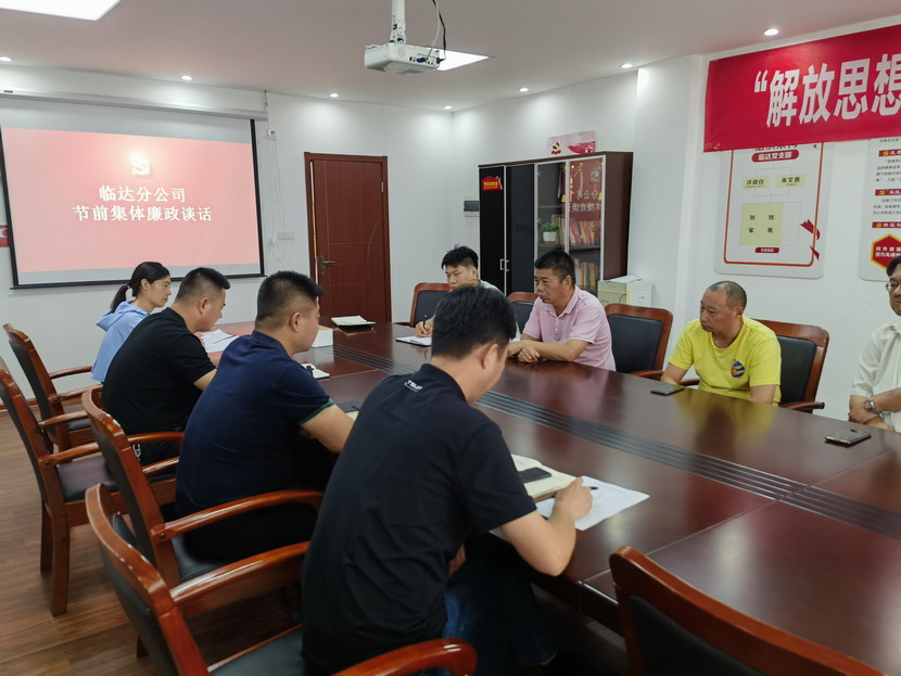 ? ? 中秋、國(guó)慶將至,為切實(shí)深化節(jié)日期間作風(fēng)建設(shè),進(jìn)一步強(qiáng)化廉潔自律意識(shí),筑牢防腐拒變防線。9月6日上午,臨達(dá)分公司開展節(jié)前集體廉政談話。