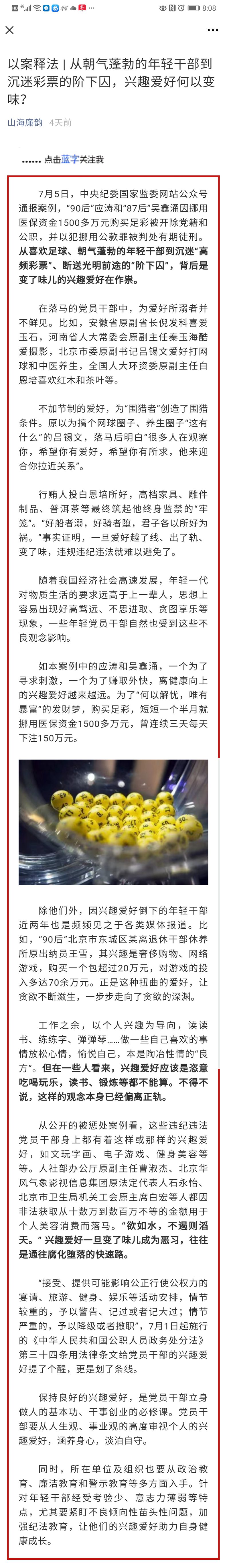[以案釋紀]從朝氣蓬勃的年經干部到沉迷彩票的階下囚,興趣愛好何以變味?