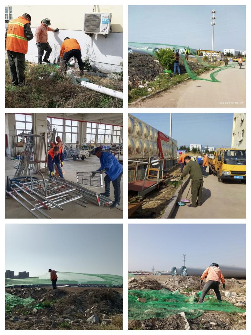 41日上午,該分公司各班組職工對室外露天的沙堆和石子用防塵網進行認真的覆蓋,有效的防止了揚沙揚塵對環境的污染影響。在車間里,職工們將散亂在各處的角手架等物品整齊的擺放在了指定區域,然后用水龍頭對地面進行認真的清洗,保證車間內一塵不染的視覺效果,本次活動的開展,明顯提升了車間和周邊環境的衛生條件,增強了公司的環保形象,為大干二季度營造了良好的工作環境。