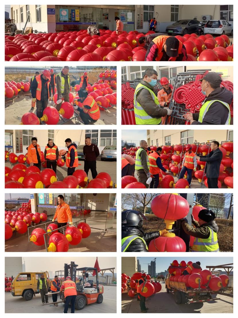 突出一個(gè)“聚”字,與以往不同的是,這次燈籠安裝工作也得到了兄弟單位的大力支持,益豐、盛達(dá)、資源、悅升公司在自身也有工程人手緊張的情況下先后派遣了12人次的電工、安全員、運(yùn)輸車輛駕駛員等精兵強(qiáng)將支援本次燈籠懸掛精品工程突擊工作。人多力量大,白天安裝工程結(jié)束后,每天晚上公司組織專人對(duì)已安裝好燈籠的每條路段進(jìn)行夜間巡查,對(duì)不亮的燈籠做好標(biāo)記,白天進(jìn)行修理,保障安裝的燈籠中國(guó)結(jié)百分之百的亮化率。