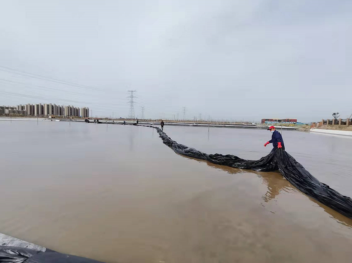 不負春光早起步,大干快上正當時。隨著我市疫情剛一解封,海州灣公司礦鹽復產工程立即開啟加速“奔跑”模式,經過前期充分的準備和精心部署,在3月31日疫情解封的第一天,安排貨車將第一批塑布運輸到位。次日早上7點,海州灣公司和翔立分公司全體員工在先鋒班組集合,開啟第一輪塑布安裝以及鹵水灌池工作,搶抓“小滿”前后十八天的池內長鹽黃金期。