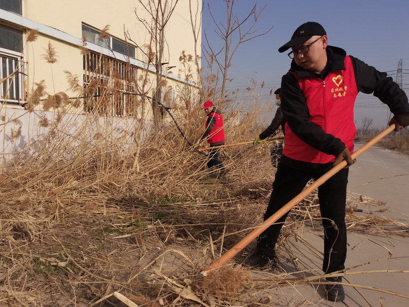 ? ? ? ? 3月4日,按照活動統(tǒng)一安排,志愿者們紛紛抵達各自點位開展統(tǒng)一活動,本次活動主要是清理公司主次干道兩邊的雜草以及各種彩色垃圾。活動中,身著紅色馬甲志愿者分工協(xié)作,首先由男同志們對周邊的蘆葦、鹽薅進行地毯式收割,大家揮動著鐮刀、鐵锨,干的十分起勁,顧不得漫天飛舞的蘆葦花和灰塵。女同志們負責用釘耙將割下的雜草以及死角里的彩色垃圾,摟到一起便于集中清理。在勞動過程中大家互相幫助、互相合作,很好的展現(xiàn)了集體的團結(jié)協(xié)作精神,有的同志手不小心被木板上的釘子劃傷了,擦干凈血接著干。經(jīng)過2個小時的清理,主次干道煥然一新。