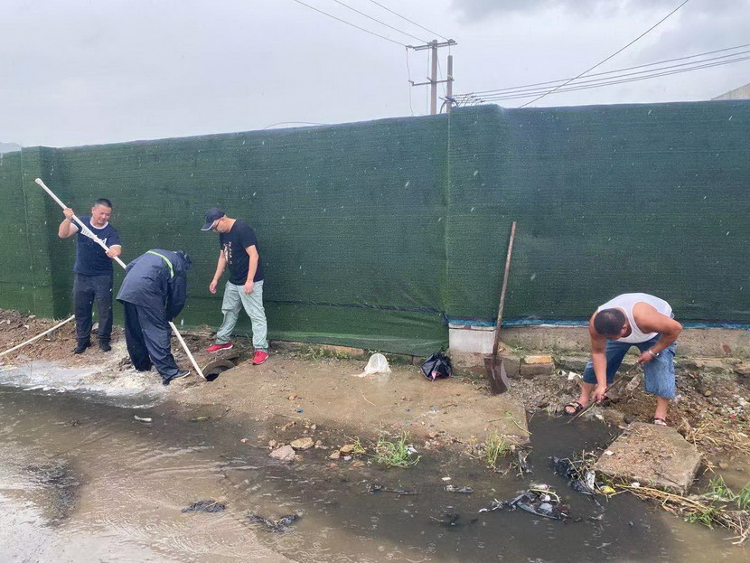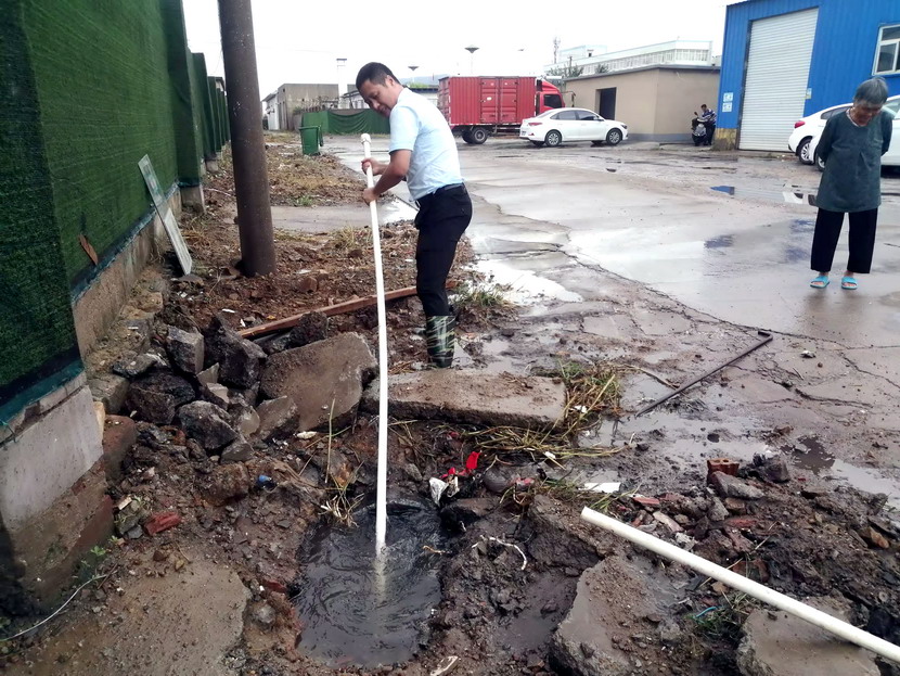 ? ? 王愛軍同志在巡查過程中發現臨達公司院外積水現象,快速展開了疏通工作。接到消息后,杜紅波、許邱白、孫健、金立根同志也加入了進來,他們手持鐵锨,一锨一锨地將下水道內的雜物逐一清理出來,遇到特別難清理的石頭、磚塊,他們甚至俯身探進污水坑中,用手把垃圾一塊一塊地清理出來,直至下水通道完全通暢。經過兩個多小時的努力,下水道口雜物被清理干凈,積水順利排出,方便了來往行人及車輛的通行。