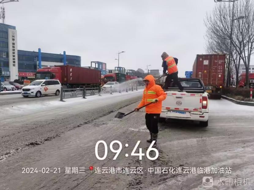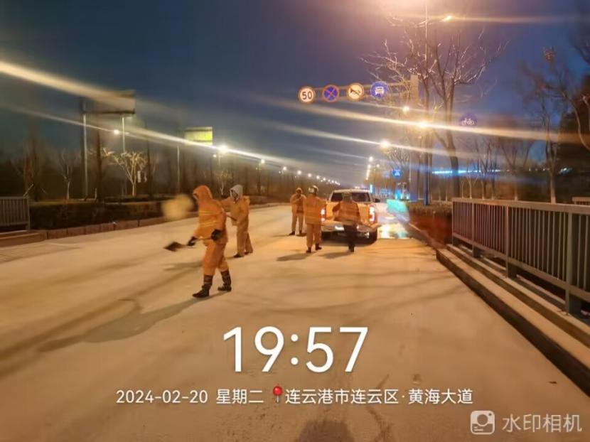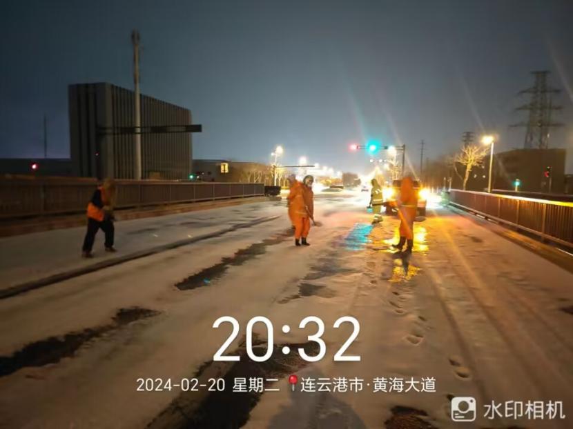 夜晚10點(diǎn),在黃海大道,支部書記范曉寶親自帶隊(duì),帶領(lǐng)張巖、盛小雷、薛加兵等6名黨員,冒雪奮戰(zhàn)、連續(xù)作業(yè),融雪劑,進(jìn)行緊急除雪除冰作業(yè)
