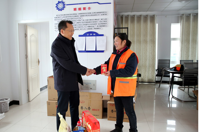 ? ? ? ?春節(jié)前夕,投資公司工會(huì)主席劉剛,副總經(jīng)理?xiàng)钍孛鳌紘?guó)走訪慰問勞動(dòng)模范,向他們傳遞組織的關(guān)懷與溫暖,并為他們送去慰問金、慰問品和節(jié)日祝福。