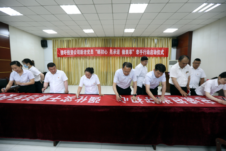 6月29日,投資公司舉行新老黨員“曬初心?亮承諾”牽手行動。投資公司黨委副書記、工會主席劉剛,各支部新老黨員代表及黨務工作人員代表參加會活動。