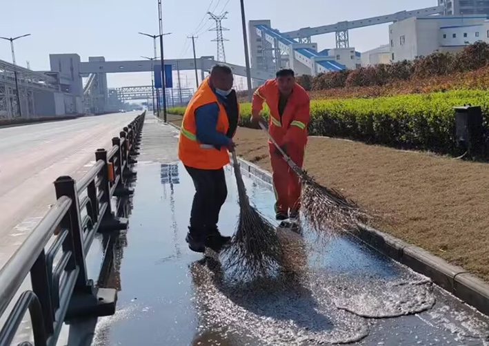 保潔黨員先鋒突擊處理閃亮道路一線