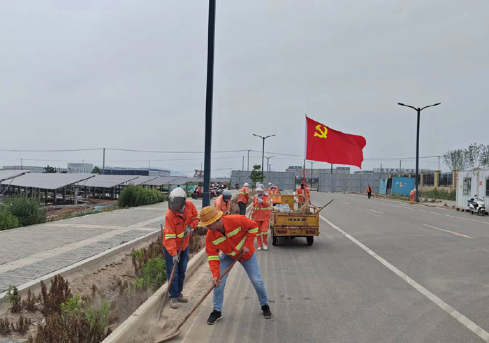 6月21日,該黨支部近30余名黨員在支部的感召下,匯集于新區(qū)節(jié)能一路道路兩邊。勞動現(xiàn)場,黨員生產(chǎn)骨干姚功身先士卒,無懼泥土粉塵揚(yáng)起,揮汗清理,不怕臟、不怕累,不放過任何衛(wèi)生死角。勞模張學(xué)軍與老黨員徐習(xí)東相互配合,打包,裝車, 及時轉(zhuǎn)運(yùn)各類垃圾達(dá)50多袋,清掃路面積土近1500米長,大家分工明確,重活臟活搶著干。隊員們齊心協(xié)力,用實際行動詮釋黨員吃苦在前、勇于擔(dān)當(dāng)?shù)姆瞰I(xiàn)精神。經(jīng)過四個多小時清理,主干道及周邊道路垃圾、雜草、泥土全部清理干凈,高質(zhì)量完成奉獻(xiàn)勞動,鮮艷的黨旗在陽光的照耀下顯得格外閃亮。(楊波)