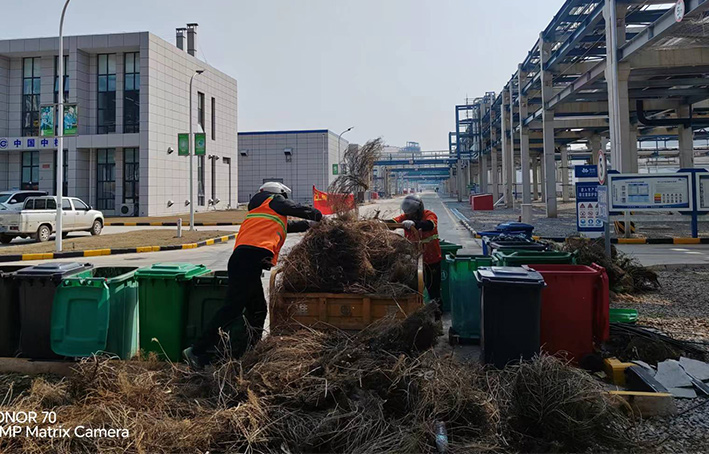 為營造石化園區(qū)內(nèi)部優(yōu)美整潔靚麗環(huán)境,保潔分公司聞令而動,第一時(shí)間趕赴中化倉儲公司院內(nèi),高質(zhì)高效完成突擊清理任務(wù)而努力奮戰(zhàn)。