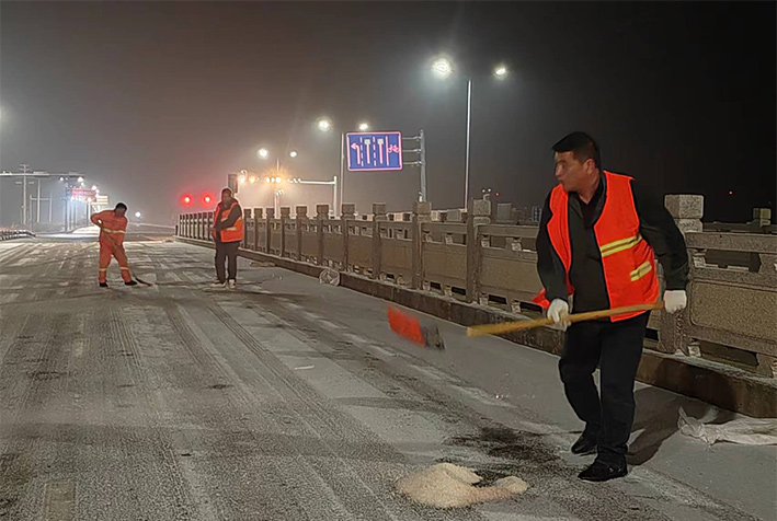 “下雪就是命令!”昨晚幾乎與降雪同步,板橋園區滿城“橘黃閃耀”。風雪中,瑞南人不畏嚴寒,堅守崗位,后勤保障加班加點,在連云園區燒香河大橋上,各班組人員協同作戰,有指揮、有鏟雪、有拋灑融雪劑,他們揮舞鐵鍬、揮動掃把,全速進行掃雪除冰工作。截止19日凌晨兩點,燒香河大橋、程圩高架橋,上下引坡等交通要道區域積雪已基本清除完畢,其他路段正在有序清理。 (金知青)