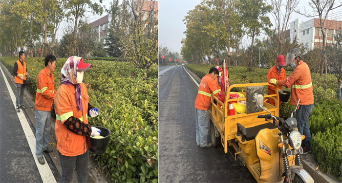 ? ? ? 工作中,班長李洪利、副班長李明春,帶領綠化班組30余人,對云港路、祥和路仁和路,進行施肥作業。“園林衛士”手拿施肥工具,2-3人為一小組,采用徒步拋灑方式進行作業,縱三路的側分帶雪松,因長勢不良土壤環境因素,為重點施肥對象。云港路路線較長,采取分段作業,重點突破。經過一天的忙碌,完成既定路段的施肥任務。
