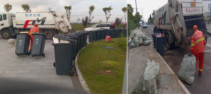 環衛分公司針對節日期間行人多、清收生活垃圾強度大、生活垃圾量驟增等問題,結合實際加強對重點地段收運力度與頻次,配足清運力量,及時清除各類生活垃圾,確保產生的垃圾日產日清,無積壓、不過夜。