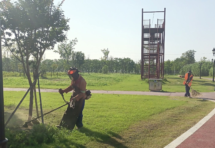 此次行動采取人工和機械除草相結合的方式,重點對公路主干道、綠化帶、草坪等區域的雜草進行清理。行動中,綠化戰士們頂著烈日,充分發揚了不怕苦、不怕累的精神,分工明確,干勁十足,有的負責割草,有的負責打藥,有的負責清運,各項工作井然有序,呈現出一片熱火朝天的勞動景象。
